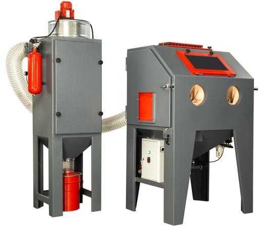 Абразивоструйные перчатки закреплены непосредственно на фронтальной поверхности камеры. Такая конструкция позволяет максимально защитить оператора от вылетающего абразива из камеры, а так же дополнительно герметизирует процесс работ.